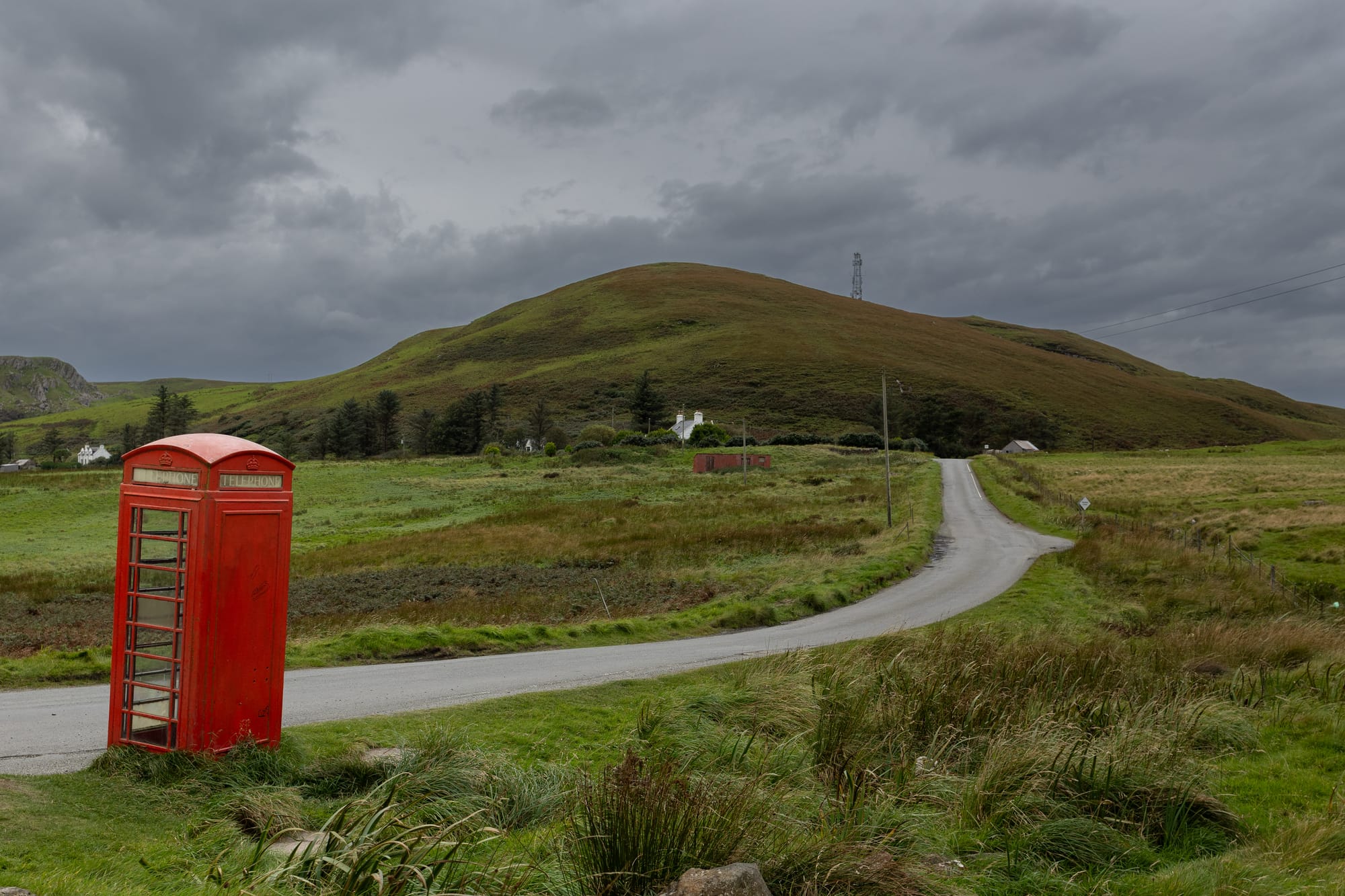 Danach war erstmal Verstärkung angesagt. Es gab natürlich Fish & Chips, ziemlich gute sogar, im "The Hungry Gull". Starke Empfehlung! Danach fuhren wir weiter zum nördlichsten Punkt der Insel. Auf dem Weg fanden wir noch eine Telefonzelle im Nirgendwo, für ganz vertrauliche Gespräche.