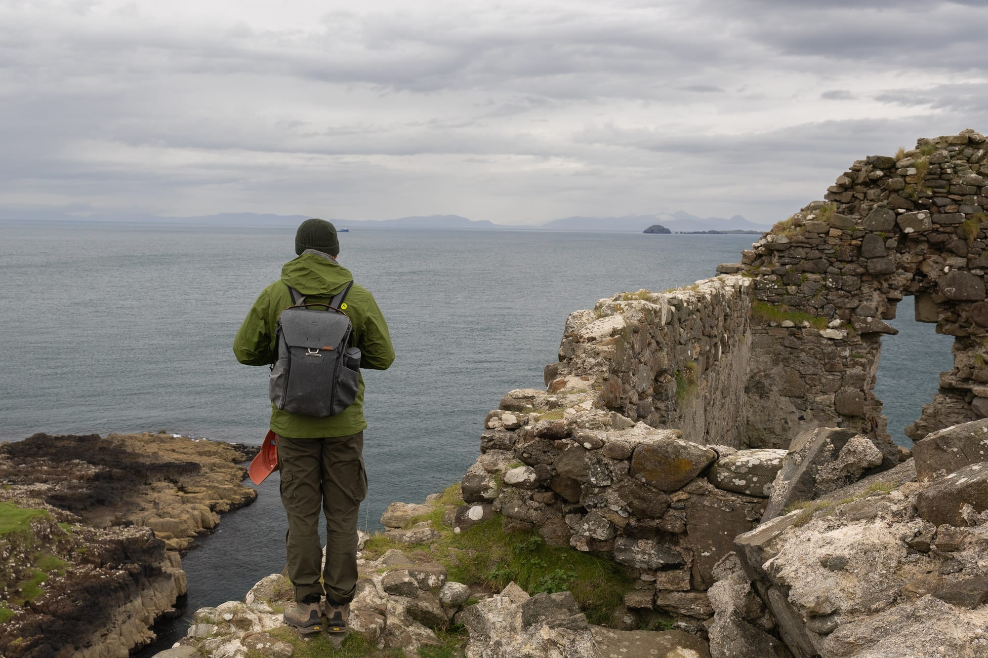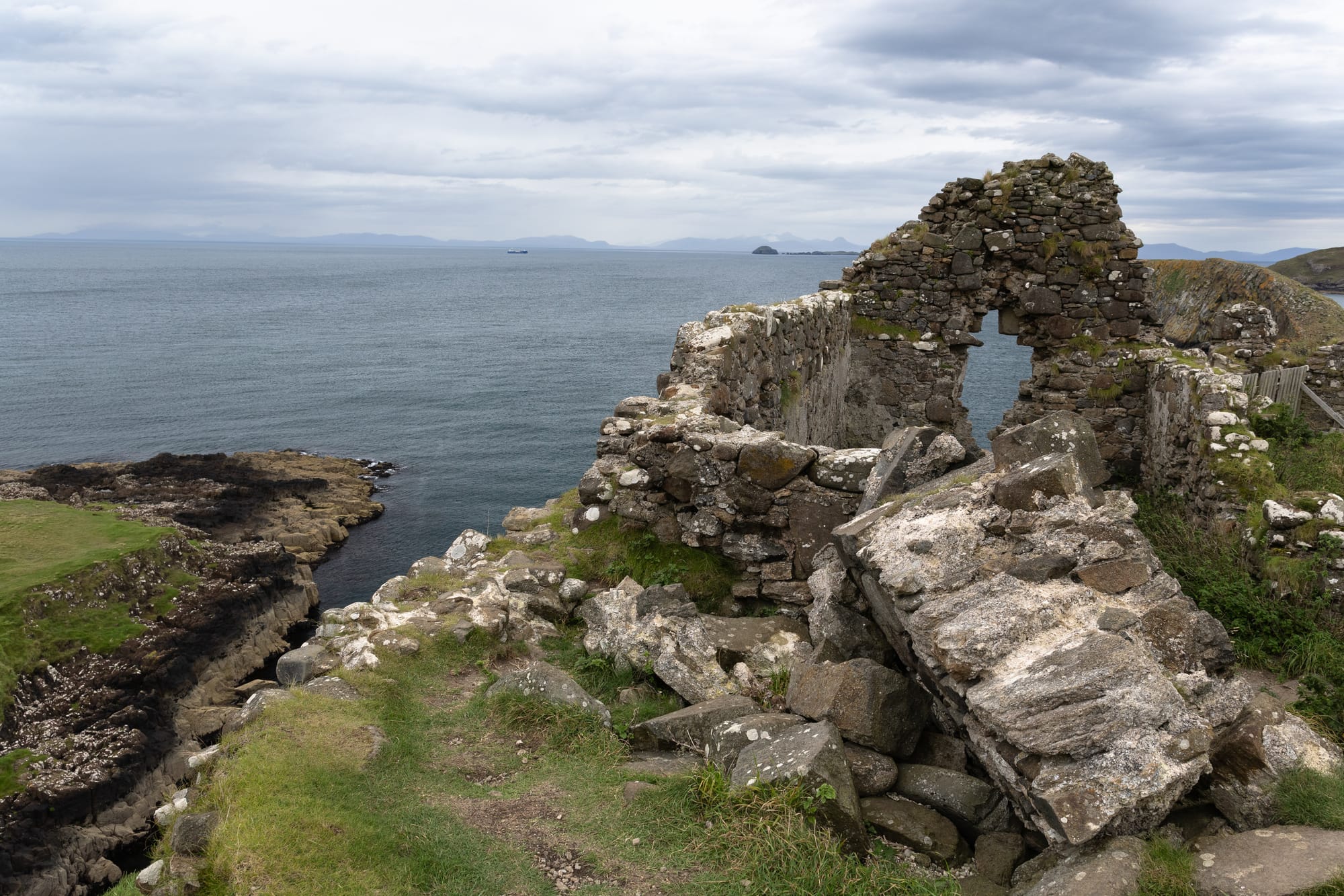 Angekommen am Rubha Hunish ganz nördlich der Insel wird man nochmal mit einer schönen Aussicht auf's Meer aus einer alten Ruine belohnt.