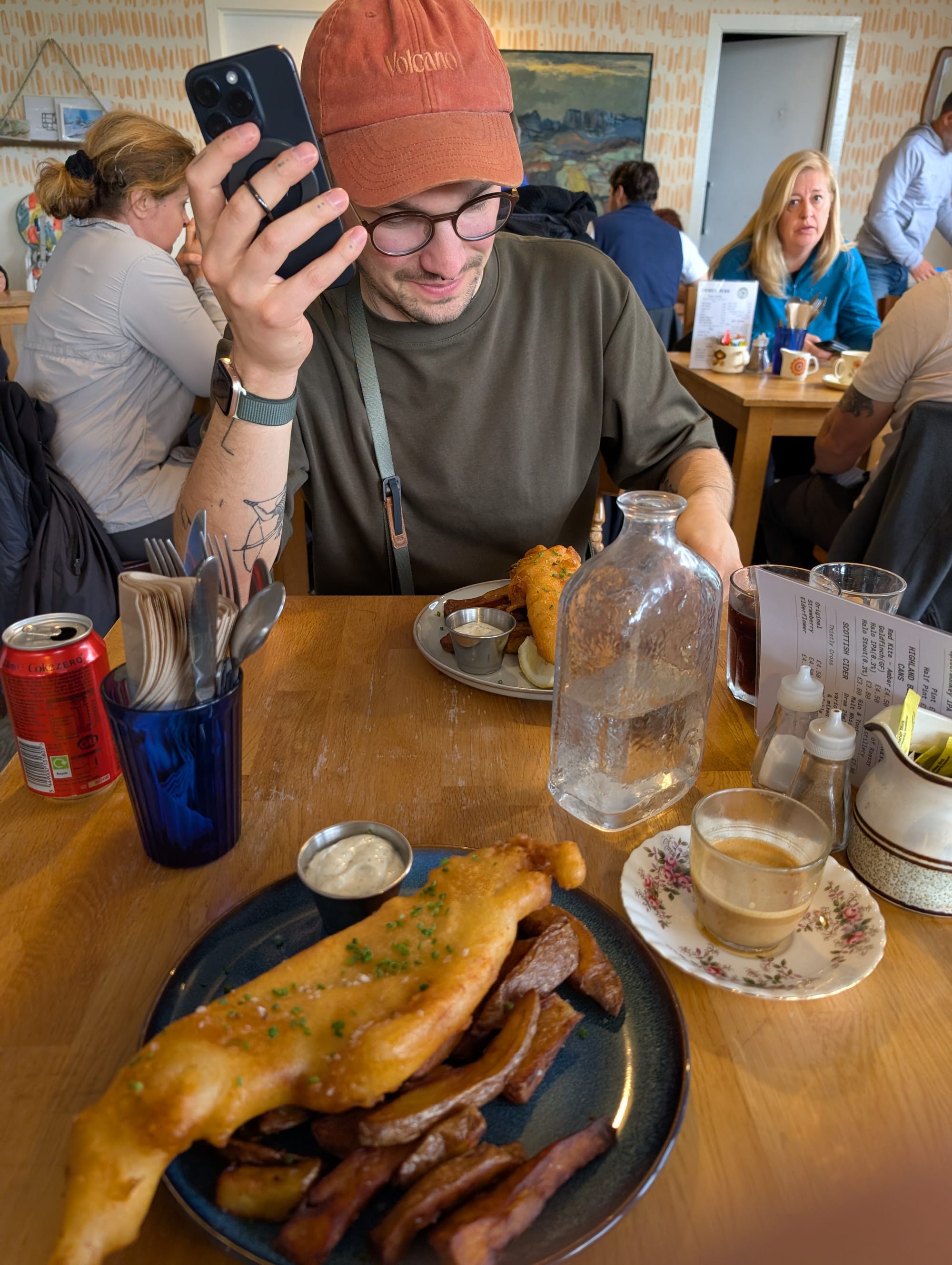 Fish & Chips im The Hungry Gull. Shulista Phone Box.