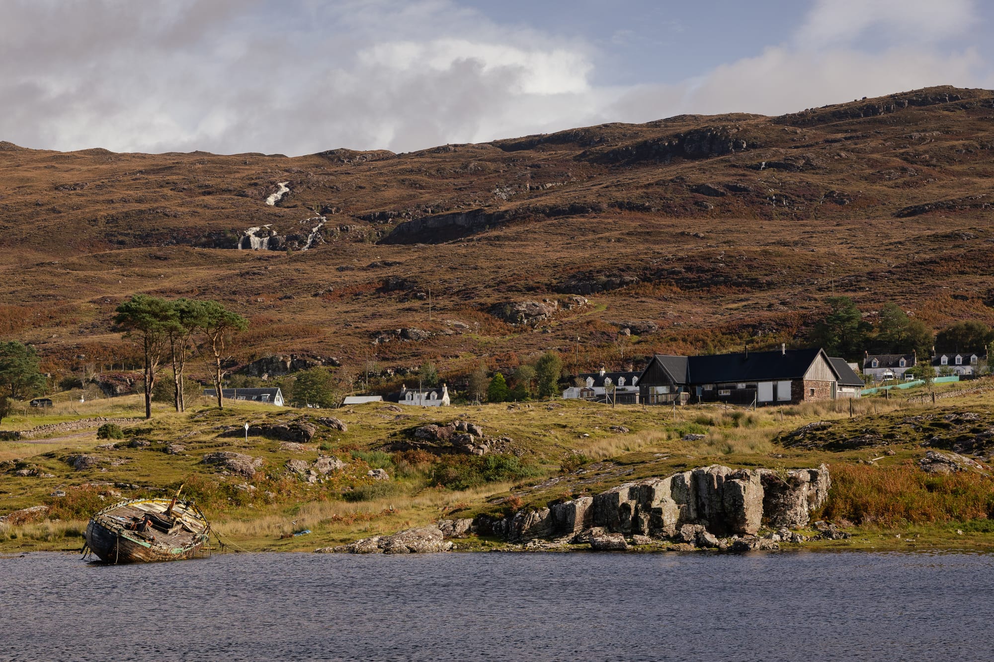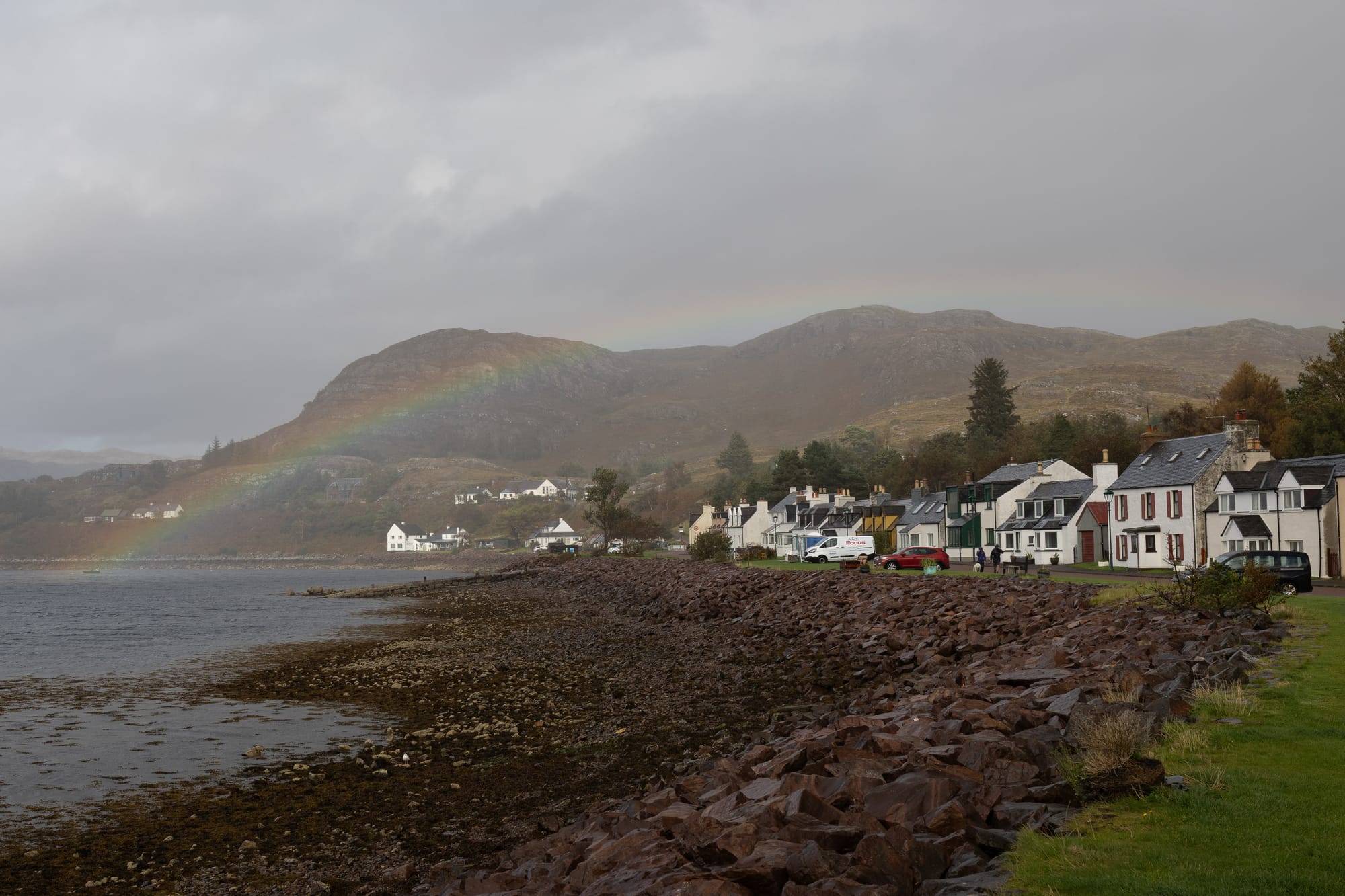 Dann fuhren wir weiter nach Kiloche zu unserer nächsten Unterkunft. In Shieldaig wollten wir eigentlich für eine Suppe stoppen, aber leider hatte das anvisierte Restaurant doch noch kein warmes Essen. Immerhin wurden wir mit einem Regenbogen belohnt. Ich versuche immer wieder die Landschaft auf Bildern festzuhalten, aber weil es wirklich so überwältigend ist gestaltet sich das eher schwierig. Ich hoffe, man bekommt trotzdem einen Eindruck von den schönen schottischen Highlands.