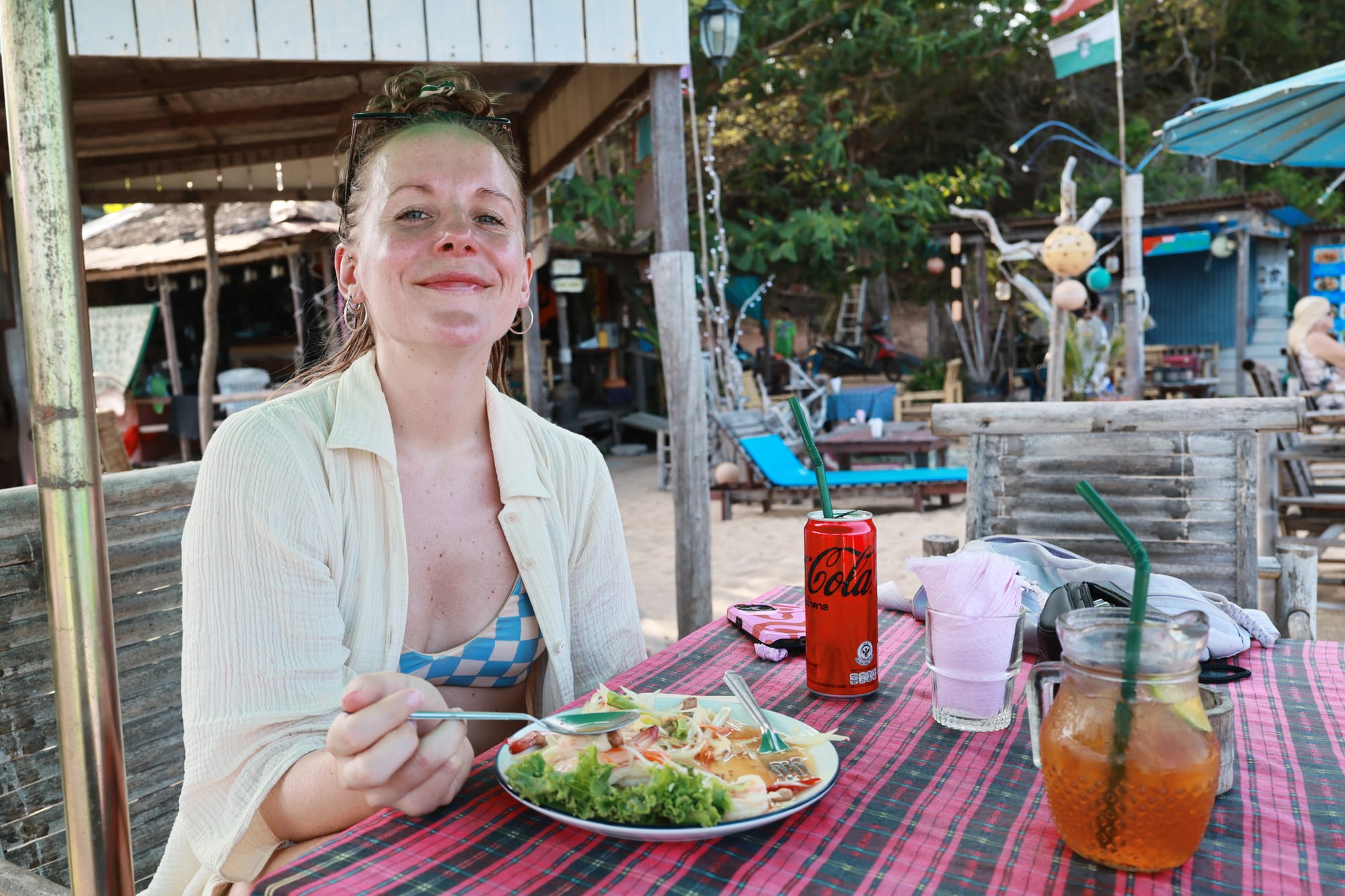 Gestern wollten wir noch zum Viewpoint laufen. Von dort hat man eine schöne Sicht auf die Bucht, aber Annika brauchte erstmal ihren täglichen Papaya Salat.