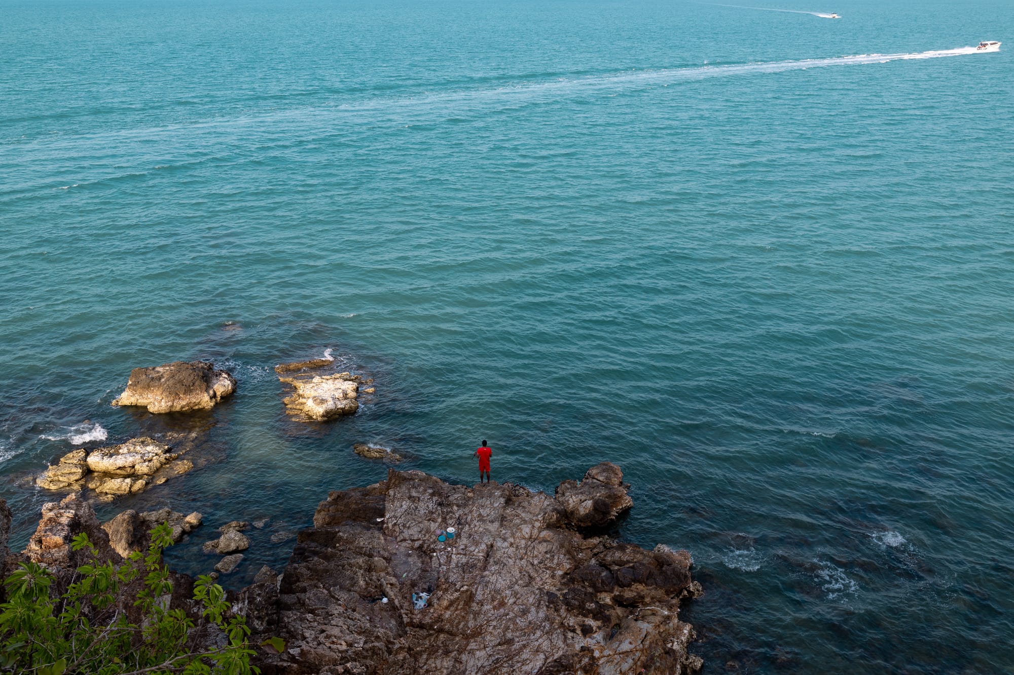 Der Ausblick war tatsächlich sehr lohnenswert. Am unteren Ende der Bucht wurde noch geangelt und so ist ganz zufällig eins meiner Lieblingsfotos aus diesem Urlaub entstanden.