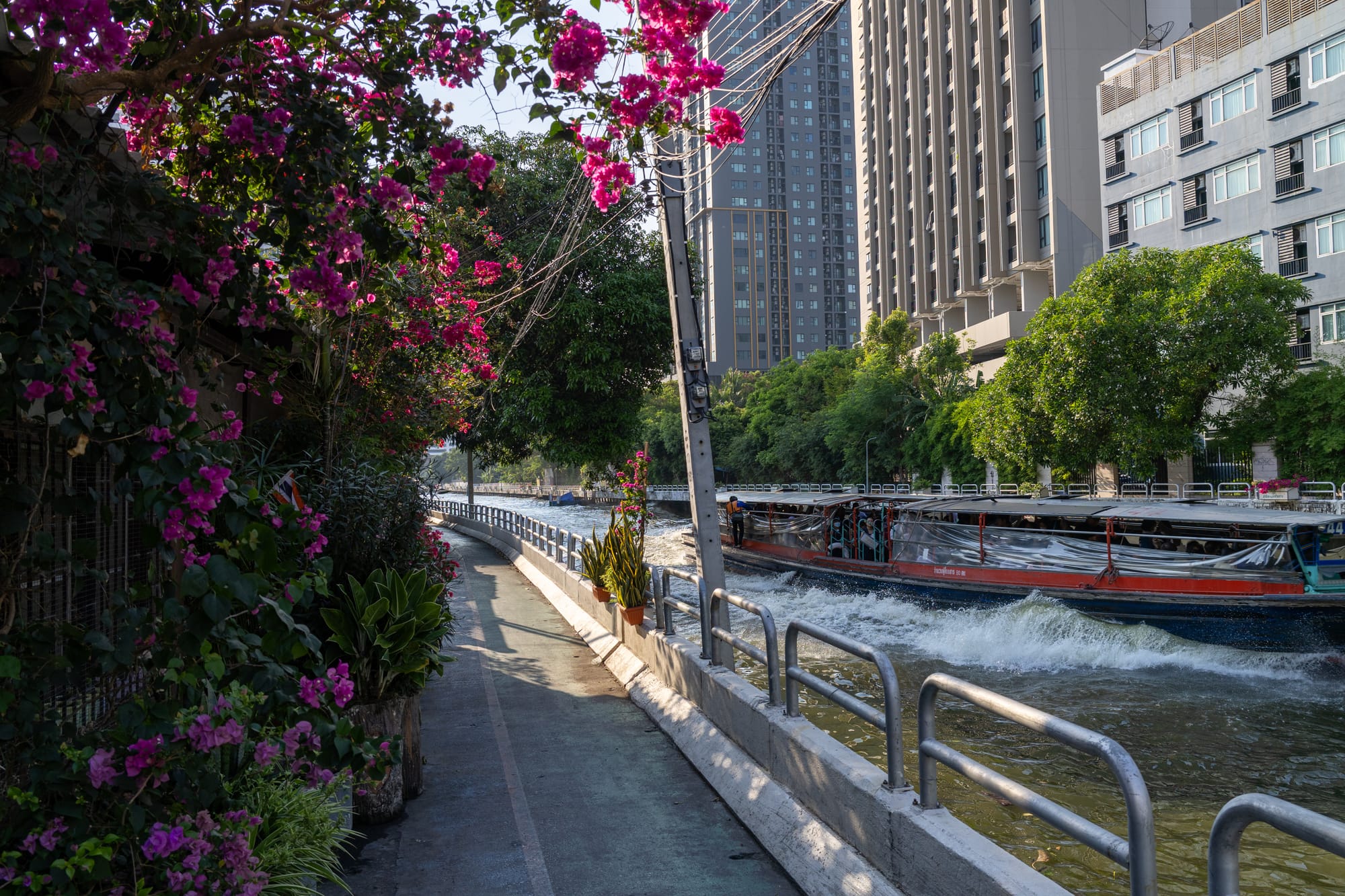 Nach 2km merkte ich, dass es noch ein ganzes Stück zu laufen ist. Glücklicherweise fährt hier eine kleine Fähre zur nächsten Metrostation. Also schnell raufgesprungen und ab ins Hotel zum Abkühlen.