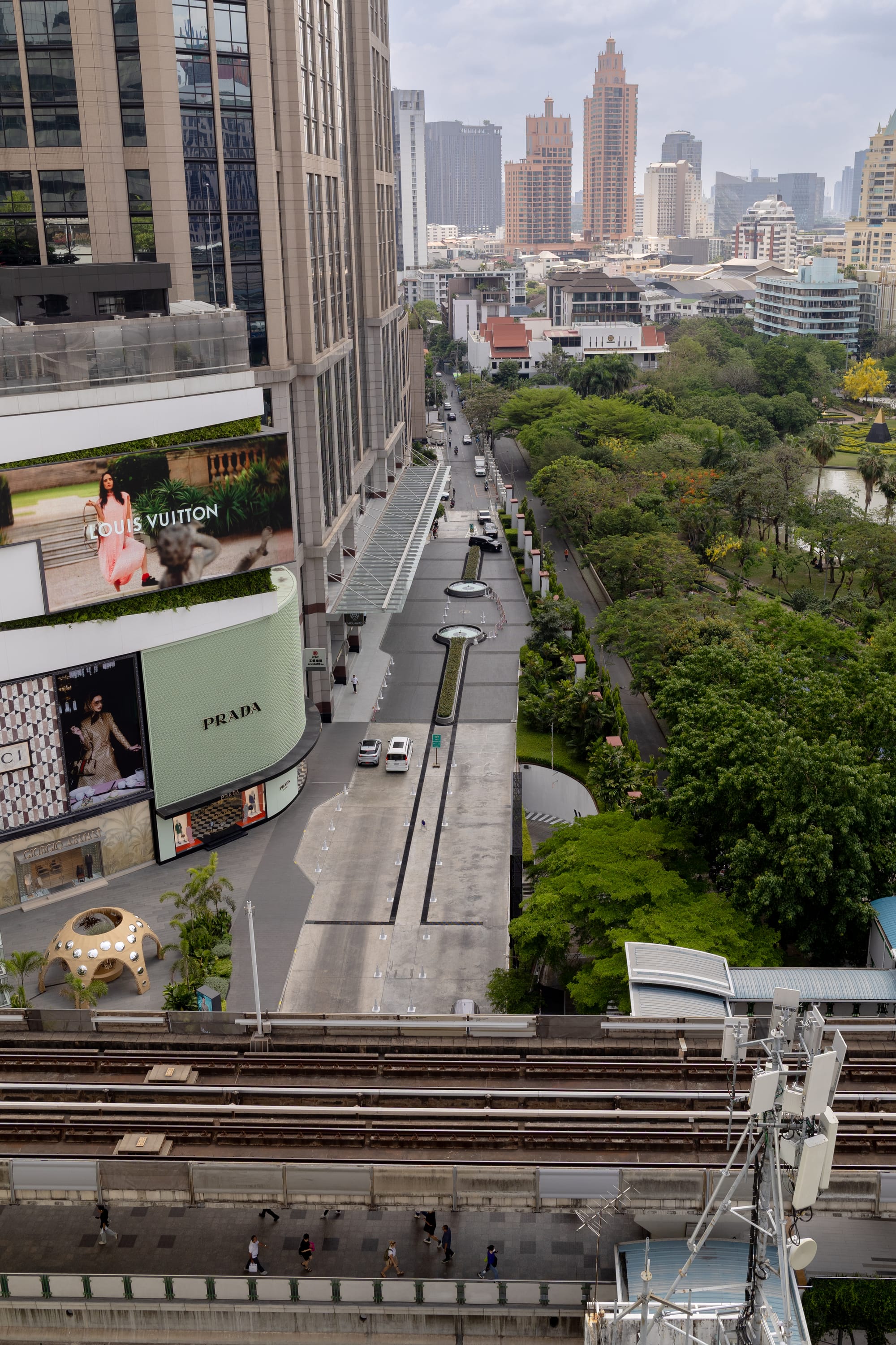 Heute stand ein wenig Urban Exploration auf dem Plan. Also fuhren wir weiter Richtung Osten zur EmQuartier Mall (danke an Markus für den Tipp). Wir schlenderten ein wenig durch die Läden, aber das war nicht besonders spannend. Von Luis Vuitton bis Uniqlo war alles vertreten, aber viel spannender fanden wir den Sky Garden im 5. Stock. Das klingt jetzt erstmal nicht besonders hoch, aber Mallstockwerke sind ein wenig größer als die in einem Hamburger Wohnhaus.