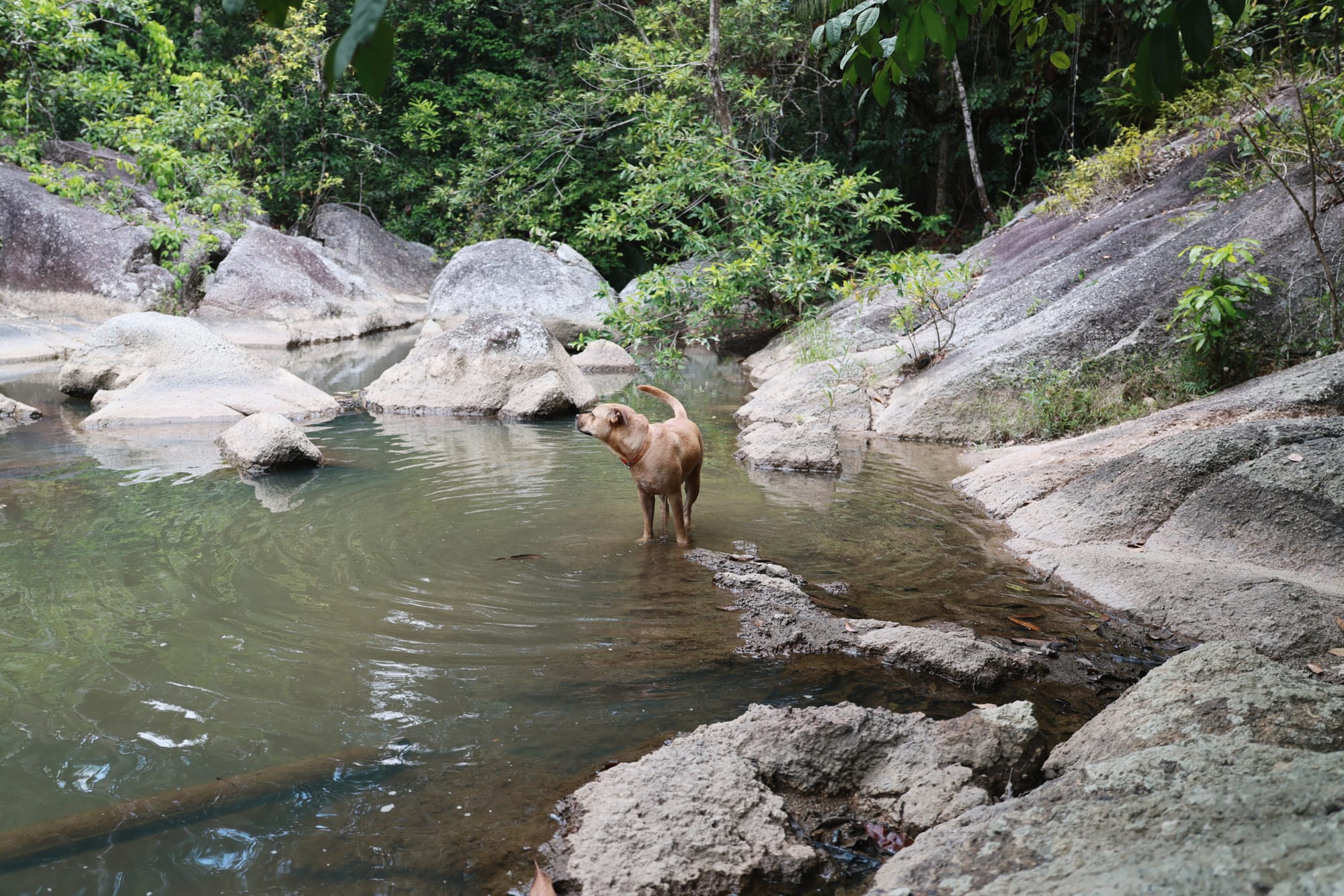 Für die Ausflüge braucht man auf jeden Fall einen Roller und den haben wir uns gemietet. Macht schon sehr viel Spaß damit rumzufahren. Zuerst sind wir zu einem Wasserfall gefahren. Dort würden wir von einem süßen Hund begrüßt der sich eher als Tourguide herausgestellt hat, denn auf dem Weg zum Wasserfall wartete er immer, bis wir die nächsten Etappe geschafft haben. Der Wasserfall an sich war somit eher die Nebenattraktion.