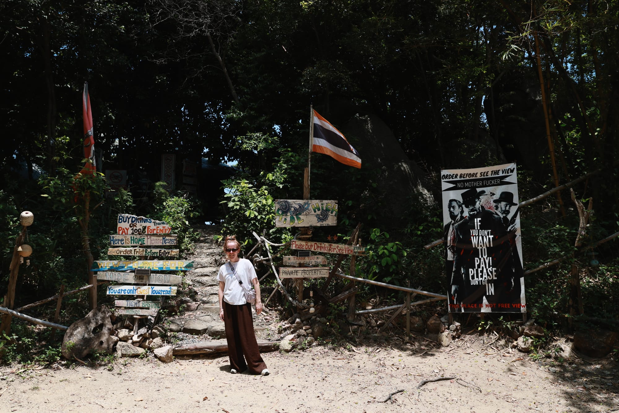 Danach sind wir noch zu einer Bar gefahren mit einer schönen Aussichtsplattform. Scheinbar kommen die Touris hier nur für die Aussicht und lassen kein Geld da, was den Besitzer nicht so begeistert. Darum hat er ein paar Schilder aufgestellt um darauf hinzuweisen 😄 erst war er auch skeptisch uns gegenüber, aber mit einer Bestellung eines Thai Eistees und einem Passionsfrucht-Shake konnten wir uns in sein Herz ordern. Und die Aussicht ist wirklich schön.